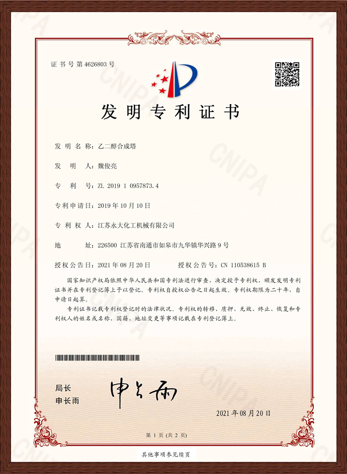 乙二醇合成塔發明專利