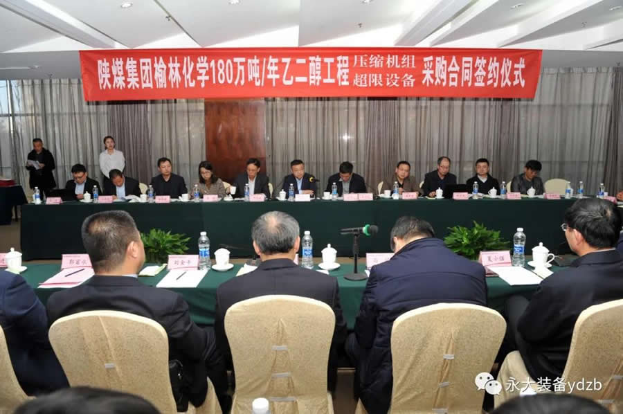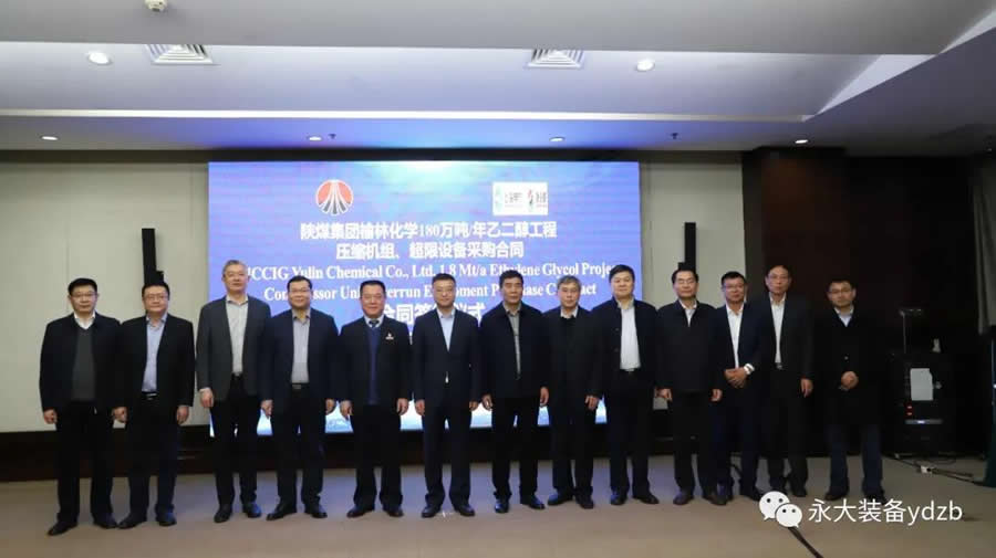 2019年12月10日,陜煤集團榆林化學煤炭分質(zhì)利用制化工新材料示范項目180萬噸/年乙二醇工程壓縮機組、超限設備采購合同簽約儀式在西安舉行。
